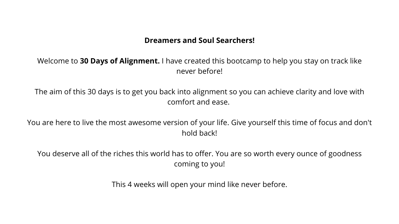 The aim of this 30 days is to get you back into alignment with joy. With clarity and love. With comfort and ease.